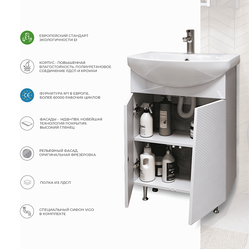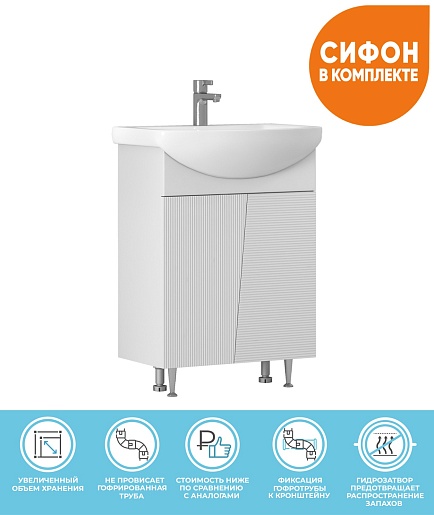 В комплекте: тумба, сифон, ножка (4 шт.).