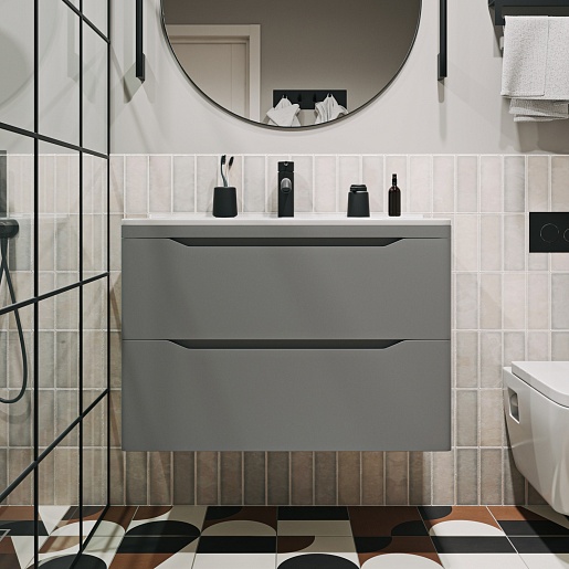 Подвесная тумба под раковину Vivon Shelly 80 серая матовая.
