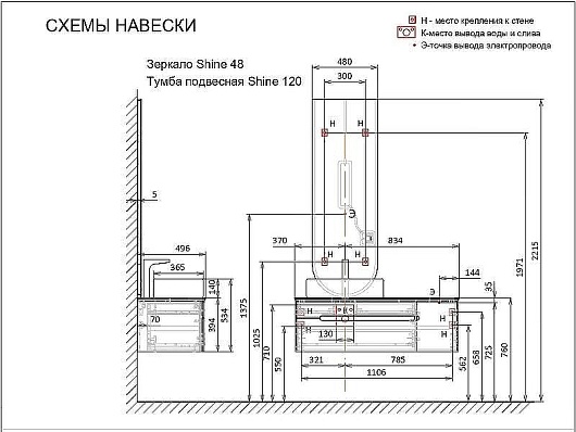 - Крепится к стене на навесы.