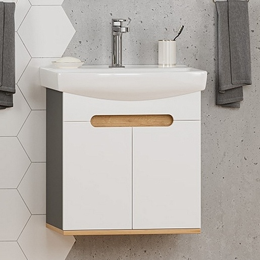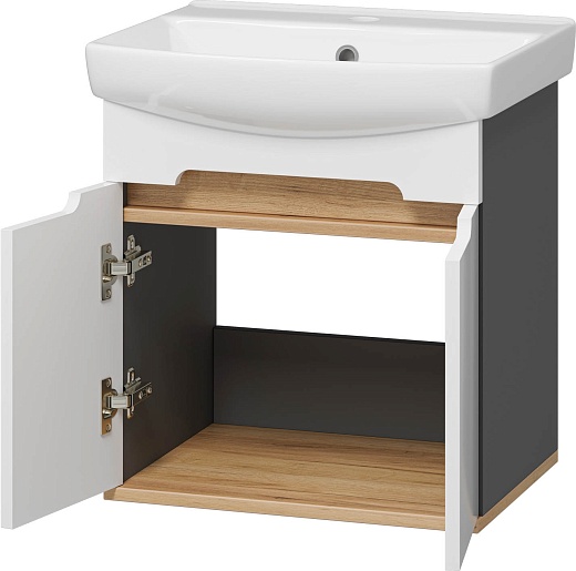 Misty Тумба под раковину Сканди 50 подвесная белая/дуб крафт золотой/антрацит