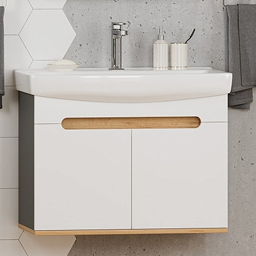 Misty Тумба под раковину Сканди 70 подвесная белая/дуб крафт золотой/антрацит