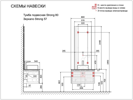 Jorno Тумба под раковину Strong 80 с подсветкой антрацит