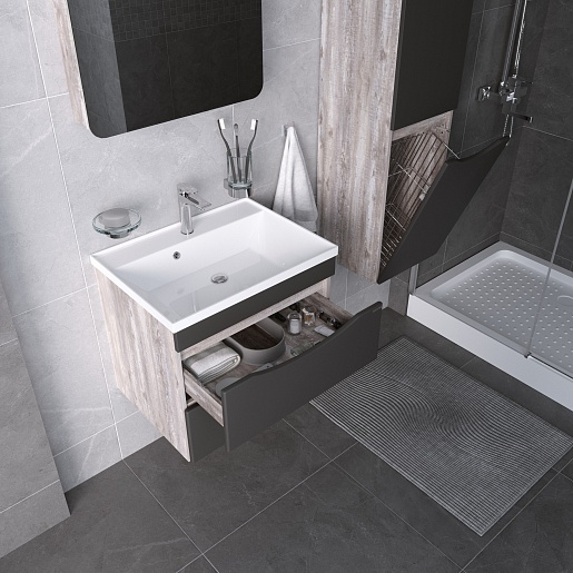 Grossman Тумба под раковину Талис 70 подвесная бетон пайн/графит матовый