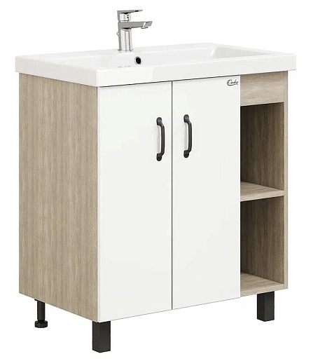 Onika Тумба под раковину Тимбер 90 напольная белая матовая/дуб сонома правая