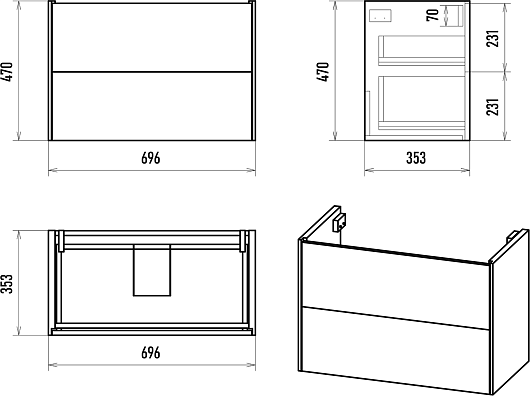- 2 выдвижных ящика с нажимным механизмом открытия Push-to-Open.