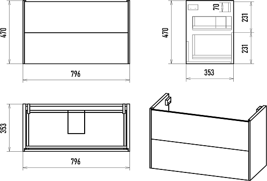 - 2 выдвижных ящика с нажимным механизмом открытия Push-to-Open.