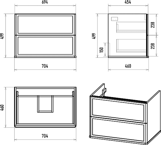 - 2 выдвижных ящика с направляющими скрытого монтажа.