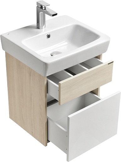 Акватон Тумба под раковину Верди Pro 50 подвесная белая/ясень фабрик