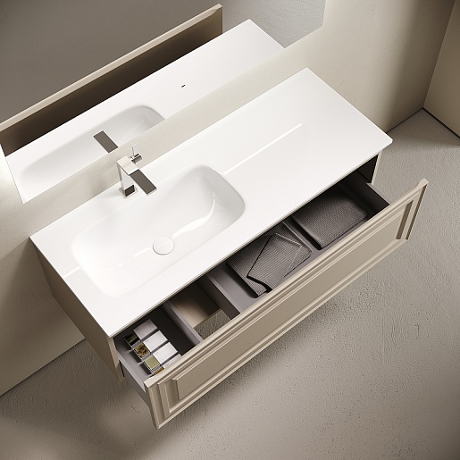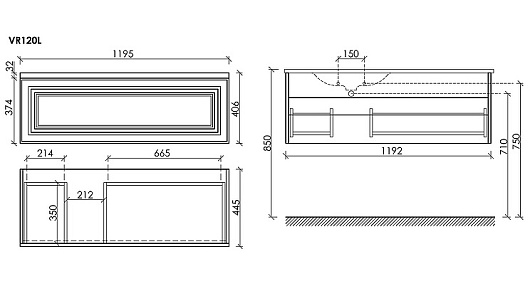 - Тумба крепится к стене и дополнительно опирается на ножки / крепится к стене на навесы.