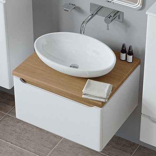 Mixline Тумба под раковину Виктория 60 подвесная белая софт/дуб светлый