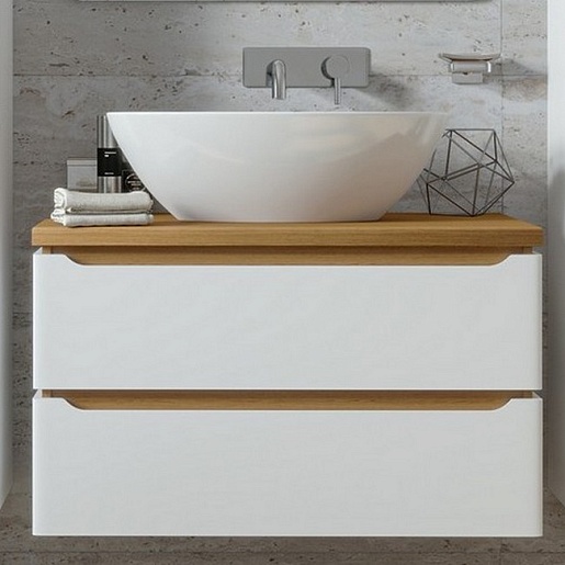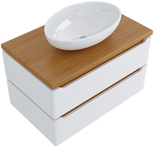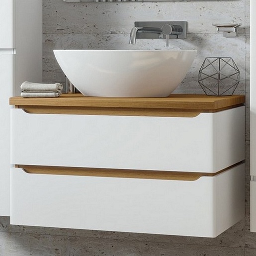 Mixline Тумба под раковину Виктория 80 подвесная белая софт/дуб светлый