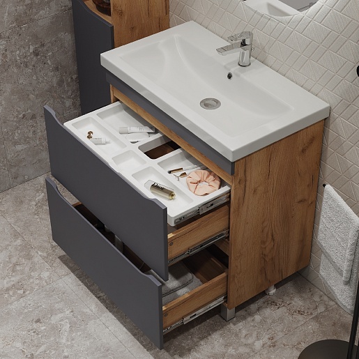 Напольная тумба под раковину Vigo Wave 800-0-2 - арт. 385 дуб золотой.