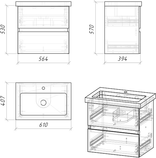 Подвесная тумба под раковину Grossman Юнит 60 - арт. 206017.