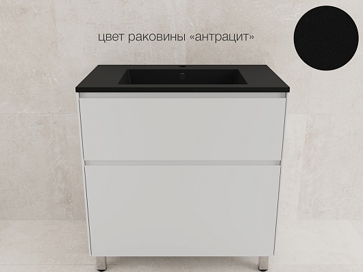 Style Line Тумба с кварцевой раковиной антрацит Лима 80 Plus эмаль белая матовая