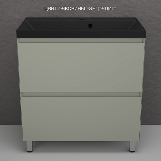 Style Line Тумба с кварцевой раковиной антрацит Манхэттен 80 Plus эмаль олива матовая