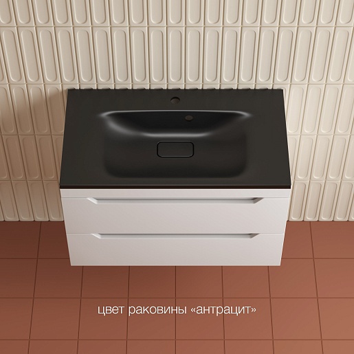 Style Line Тумба с кварцевой раковиной антрацит Остин 80 подвесная белая матовая