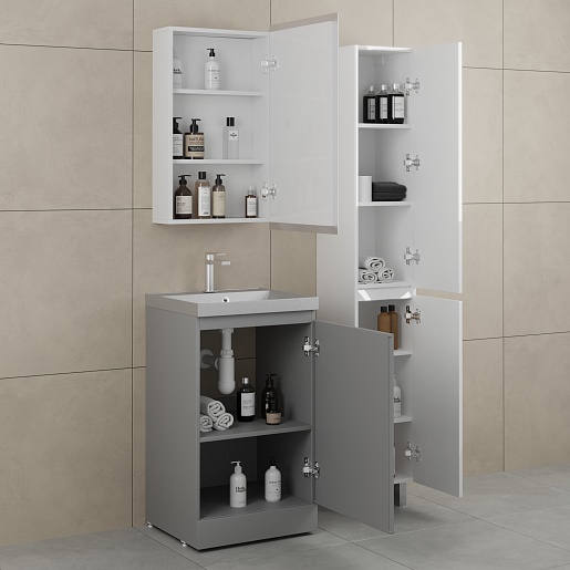 Напольная тумба с раковиной Style Line Батлер 50 серая Люкс антискрейтч Plus - арт. СС-00002489 / СС-00002486.