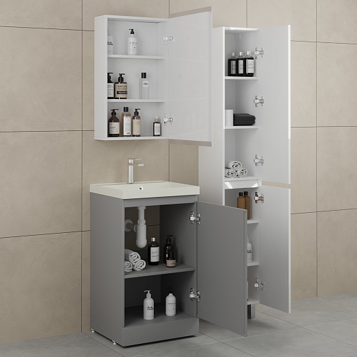 Напольная тумба с раковиной Style Line Батлер 50 серая Люкс антискрейтч Plus - арт. СС-00002489 / СС-00002487.