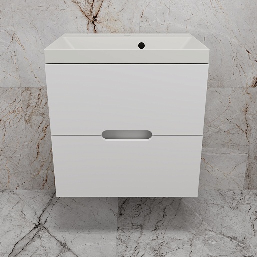 Style Line Тумба с кварцевой раковиной жасмин Матис 60 подвесная белая матовая