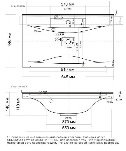 • Раковина из литьевого мрамора со слив-переливом.