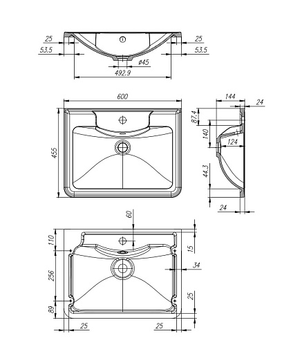 Мебельная раковина 60/45 BB600/455-LV-MR-ALR