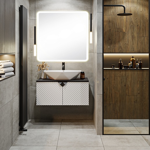 Runo Тумба с раковиной Андорра 85 Poligono подвесная белая матовая/черная