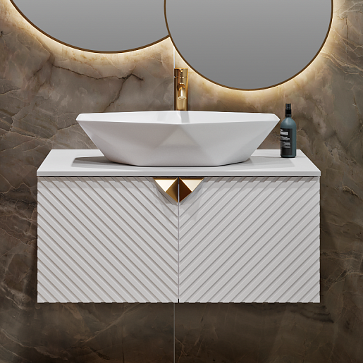 Тумба под раковину Андорра 85 подвесная белая матовая