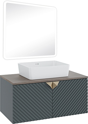 Тумба под раковину Андорра 85 подвесная зеленый графит/дуб коньячный