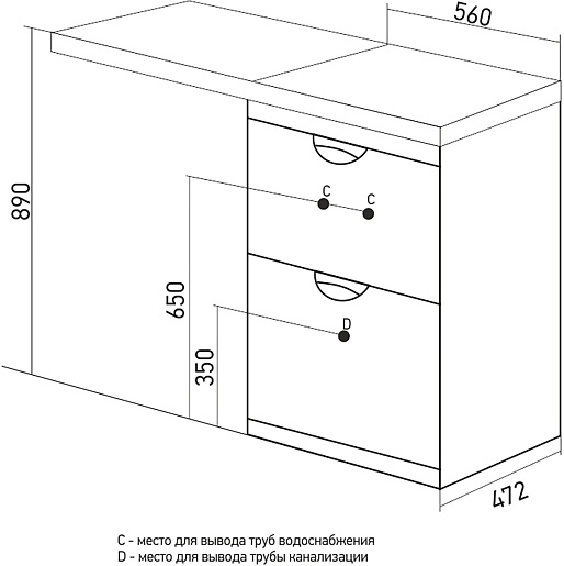- 2 выдвижных ящика.