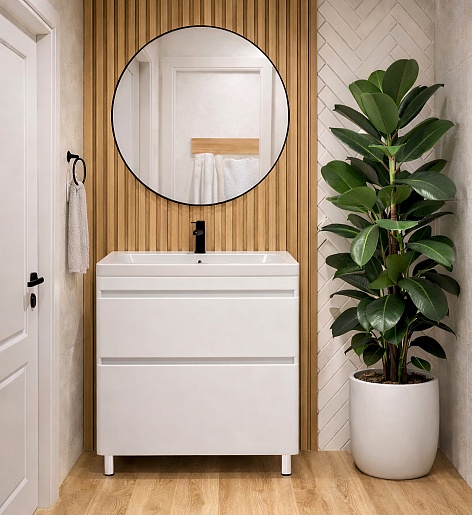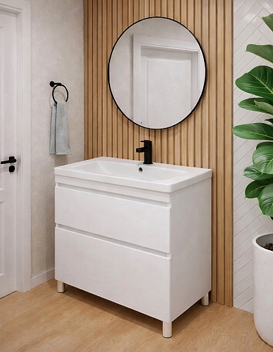 Тумба с раковиной Vivon Atwood 80 напольная белая матовая - арт. Atwood-80-pol-WH-matte / Atlantik-80.
