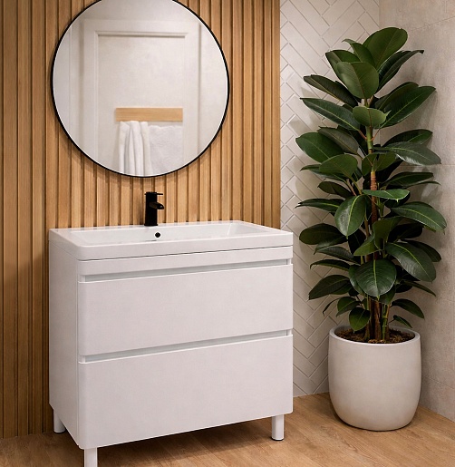 Тумба с раковиной Vivon Atwood 80 напольная белая матовая - арт. Atwood-90-pol-WH-matte / Atlantik-90.