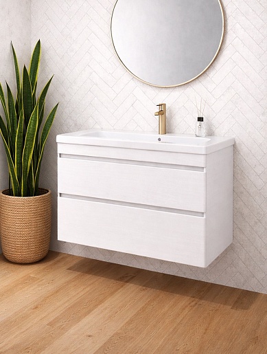 Подвесная тумба с раковиной Vivon Atwood 90 белая матовая - арт. Atwood-90-podvesnaya-WH-matte / Atlantik-90.