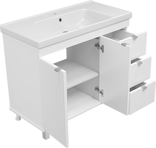 Комплектация: тумба, раковина, ножки, крепеж.