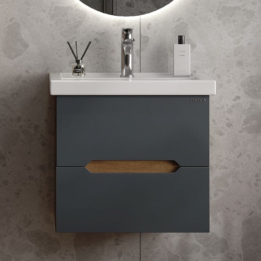 Onika Тумба с раковиной Айленд 50 подвесная графит/дуб крафт