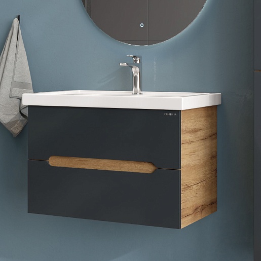 Onika Тумба с раковиной Айленд 80 подвесная графит/дуб крафт