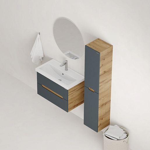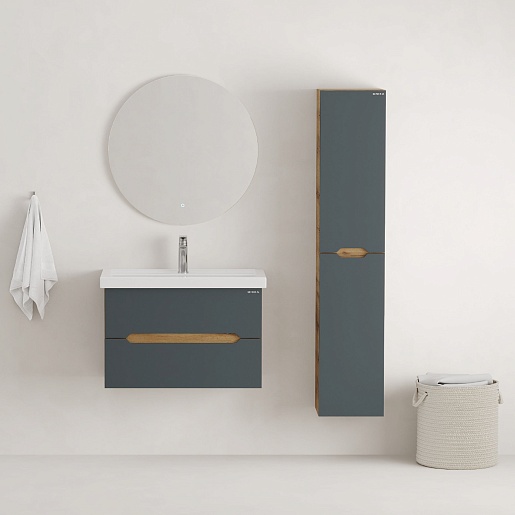 Тумба под раковину Айленд 80 подвесная графит/дуб крафт