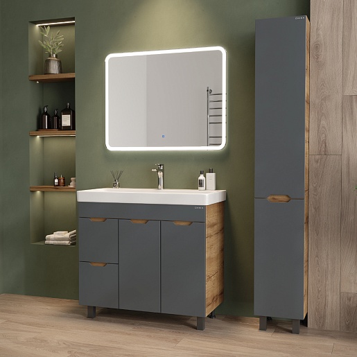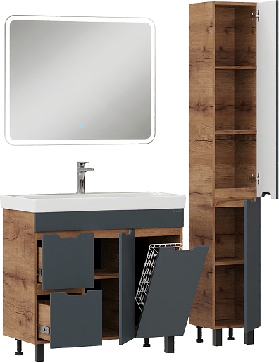 Тумба под раковину Айленд 90 с б/к графит/дуб крафт