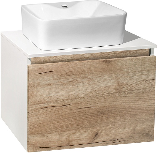 Тумба под раковину Бари 60 подвесная дуб крафт/белая