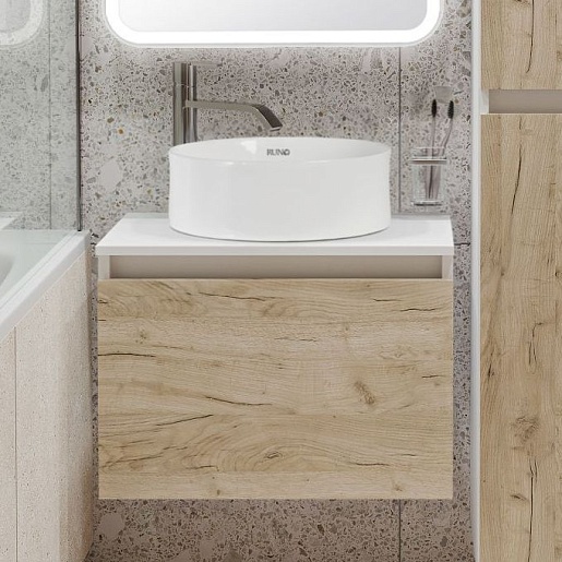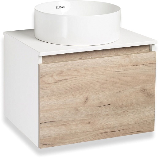 Runo Тумба с раковиной Бари 60 Palla подвесная дуб крафт/белая