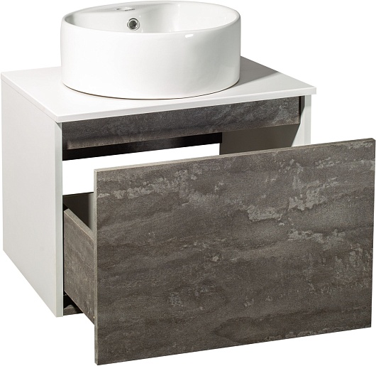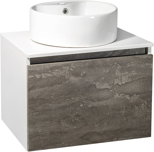 Тумба под раковину Бари 60 подвесная железный камень/белая