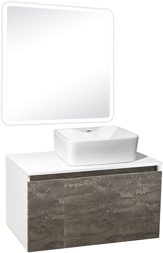 Тумба под раковину Бари 80 подвесная железный камень/белая