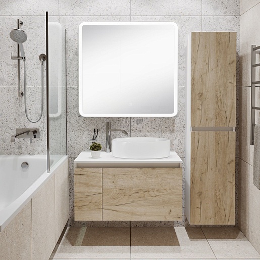 Тумба под раковину Бари 80 подвесная дуб крафт/белая