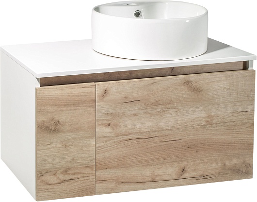 Тумба под раковину Бари 80 подвесная дуб крафт/белая