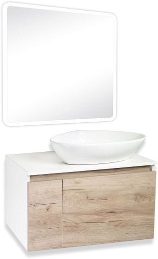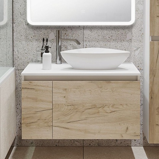 Тумба под раковину Бари 80 подвесная дуб крафт/белая
