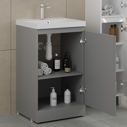 Напольная тумба с раковиной Style Line Батлер 50 серая Люкс антискрейтч Plus - арт. СС-00002489 / СС-00002484.