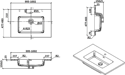 - Раковина из литьевого мрамора с акриловыми смолами.
