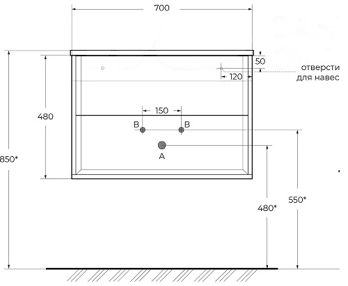 Тумба под раковину Bellagio 70 grigio nuvola