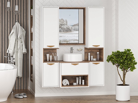Тумба под раковину Bergen 60 подвесная дуб галифакс олово/белая