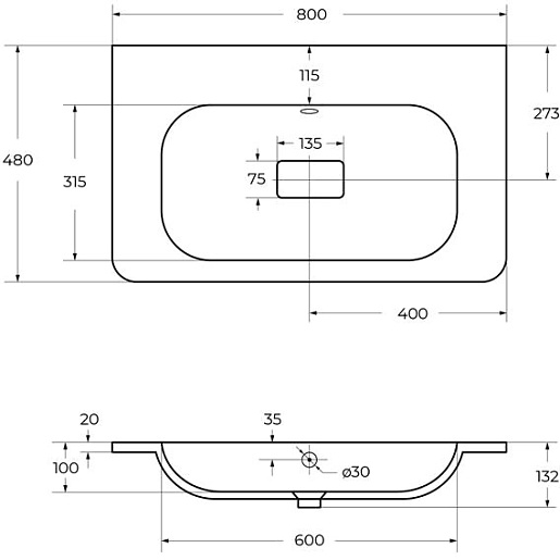 - Раковина из искусственного мрамора без отверстия под смеситель.
