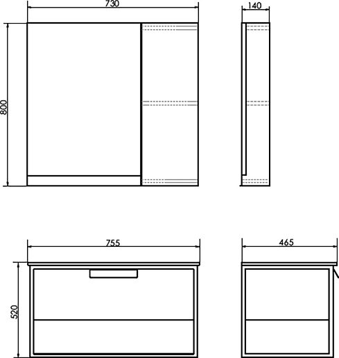 - 1 выдвижной ящик, 1 открытая полка.